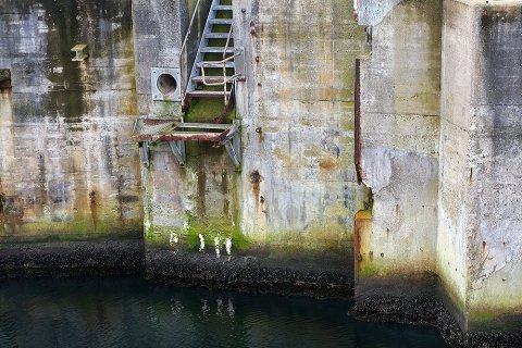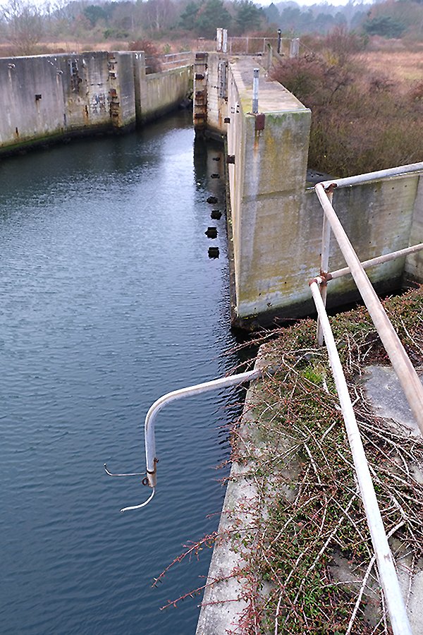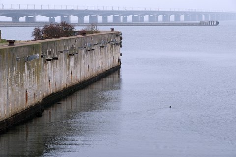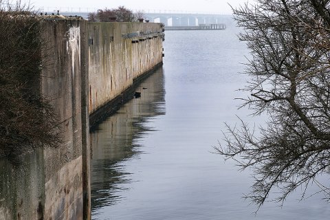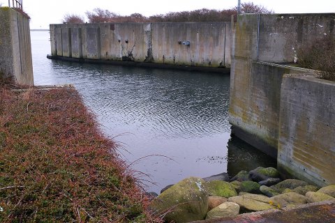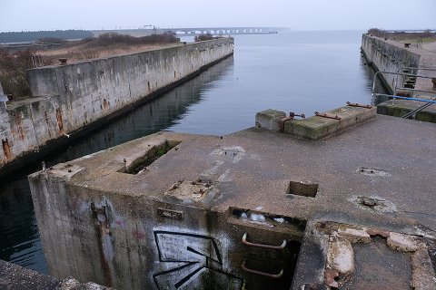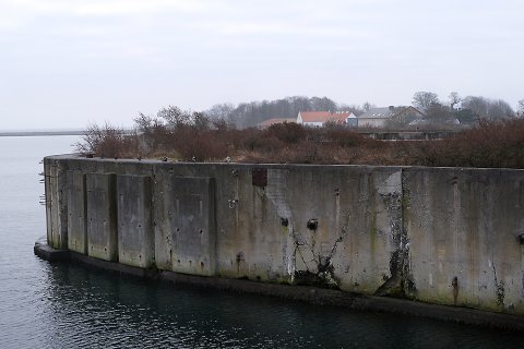 En søvnig søndag formiddag i vandkoldt gråvejr. 26. januar 2020, diset og stille vejr. Kun en enkelt svømmefugl skaber lidt kølvand i det bassin, der for næsten 22 år siden - d. 31. maj 1998 - tog afsked med "Prins Knud" og dermed lukkede bilfærgeruten Halsskov/Knudshoved helt ned. 41 års drift (1957-98) og i dag skelettet af færgeleje under fysisk afvikling. En færgeruin - snusket, rodet og uhyggelig.