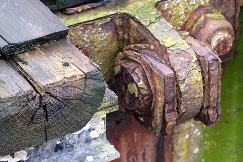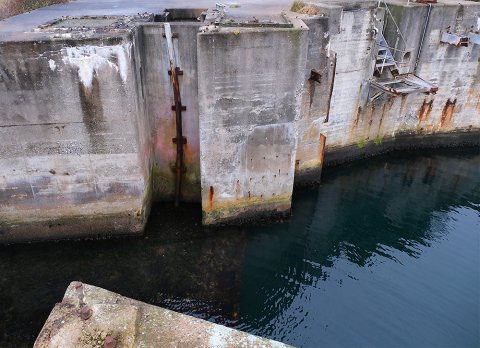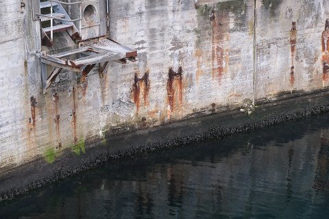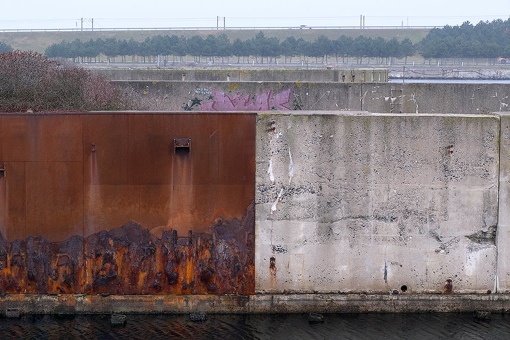 I dag er skelettet af færgelejet under fysisk afvikling. En færgeruin - snusket, rodet og uhyggelig.